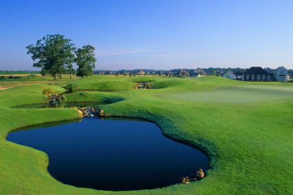 The course, which features the native terrain of Louisiana, weaves it way through grasses, wetlands and marshes. This natural layout, complete with over 50 strategically placed bunkers and water hazards on 13 of the holes, makes the course a Louisiana masterpiece.